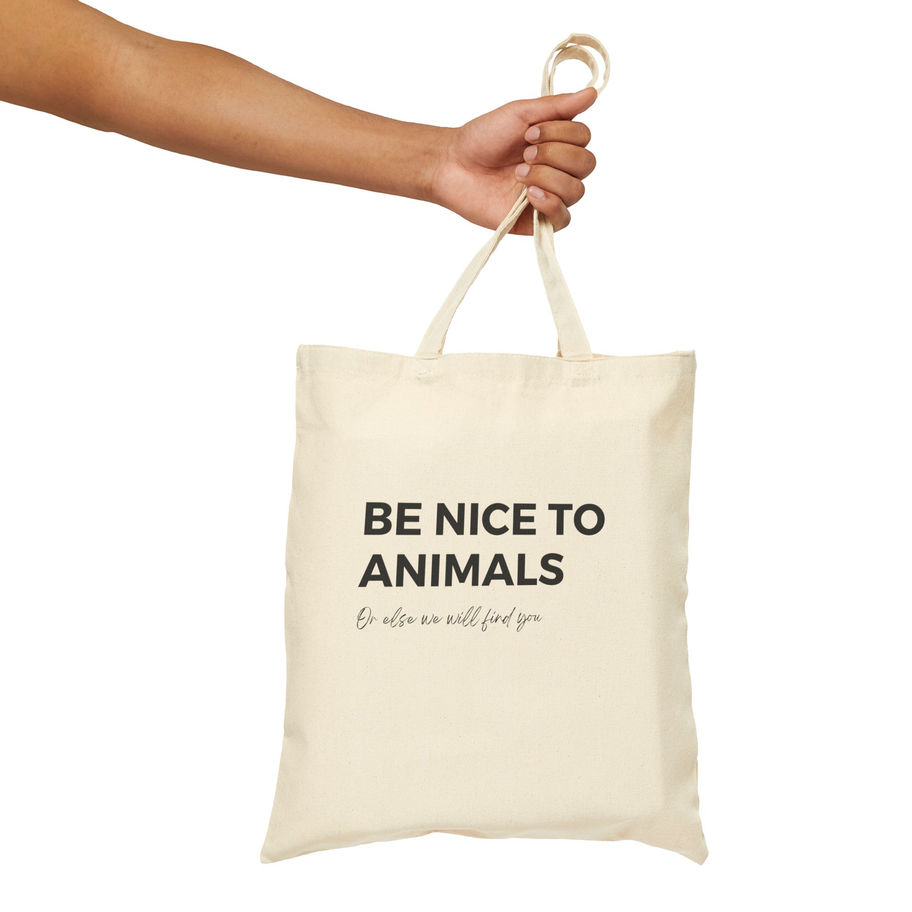 This animal lover funny canvas tote bag has a neutral design, perfect for everyday use or as a gift for a friend with a great sense of humor. It's made from 100% cotton canvas, making it strong and durable. The tote bag features flat corners, carrying handles, and a sewn-in label.