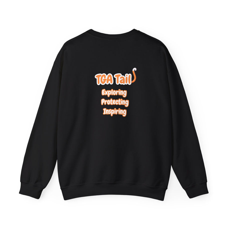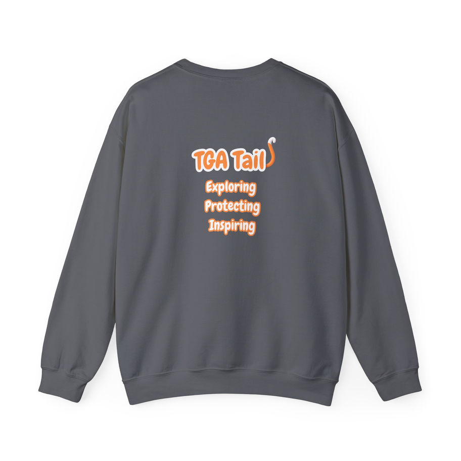 Stay warm and stylish in the TGA Tails crewneck sweatshirt. The Explore, Protect, Inspire mission statement showcases your support for animal rescue. A percentage of every sale goes towards highlighting amazing organizations. Perfect for adults looking to make a difference and stay cozy during colder months. Ideal for casual wear, lounging at home, or outdoor adventures. Relevant for animal lovers, activists, and those passionate about rescue efforts. Great for holidays, casual Fridays, or animal awareness events.